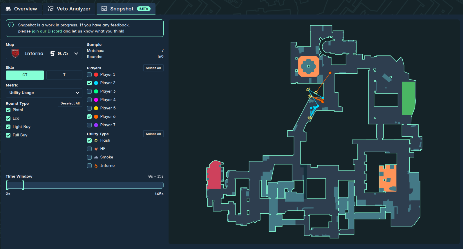 We've updated Snapshot so that it supports util! Now, you can select the "Utility Usage" metric in Snapshot and visualize what util is thrown, by which player, where they throw it from*, and when.